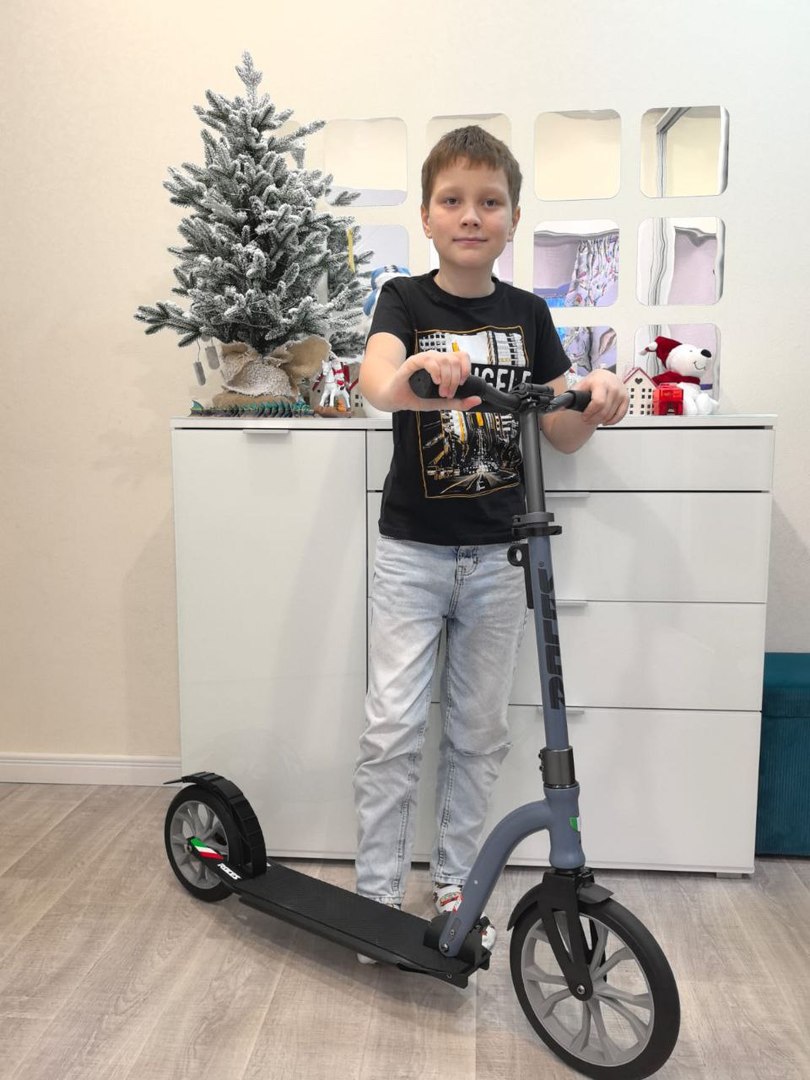«Ничего себе колеса! Люблю кататься на самокате. Использую его, чтобы быстро передвигаться. В школу ездить», – поделился своей радостью Лев.