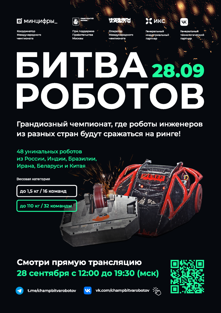 Не упустите возможность стать свидетелем захватывающих поединков и окунуться в мир высоких технологий. Новый сезон «Битвы роботов» обещает много интересного и увлекательного, как для участников, так и для зрителей!
