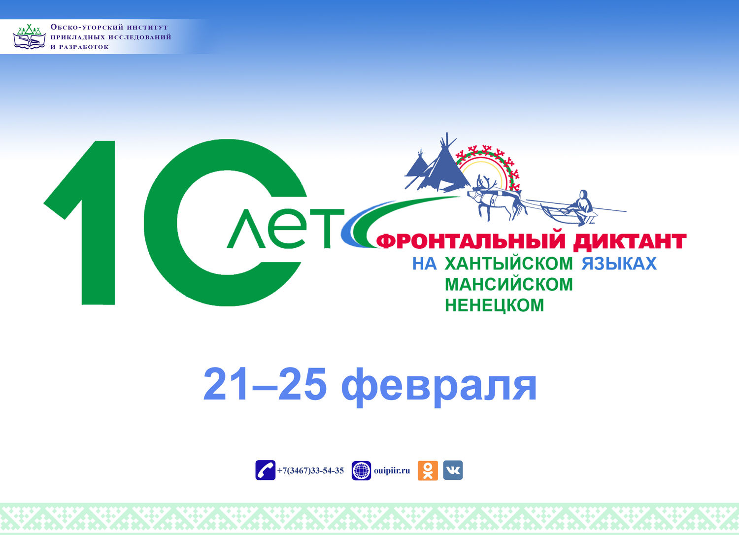 21-25 февраля 2024 года в рамках празднования Международного дня родного языка в десятый раз пройдет образовательная акция «Фронтальный диктант на хантыйском, мансийском, ненецком языках» .