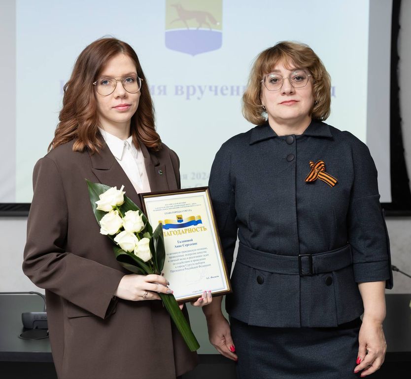 Молодые парламентарии Анна Галанова и Ксения Аптраева награждены благодарностями главы города Сургута за активную гражданскую позицию, проявленные лидерские качества и личный вклад в реализацию задач по содействию в проведении в Сургуте выборов Президента Российской Федерации.