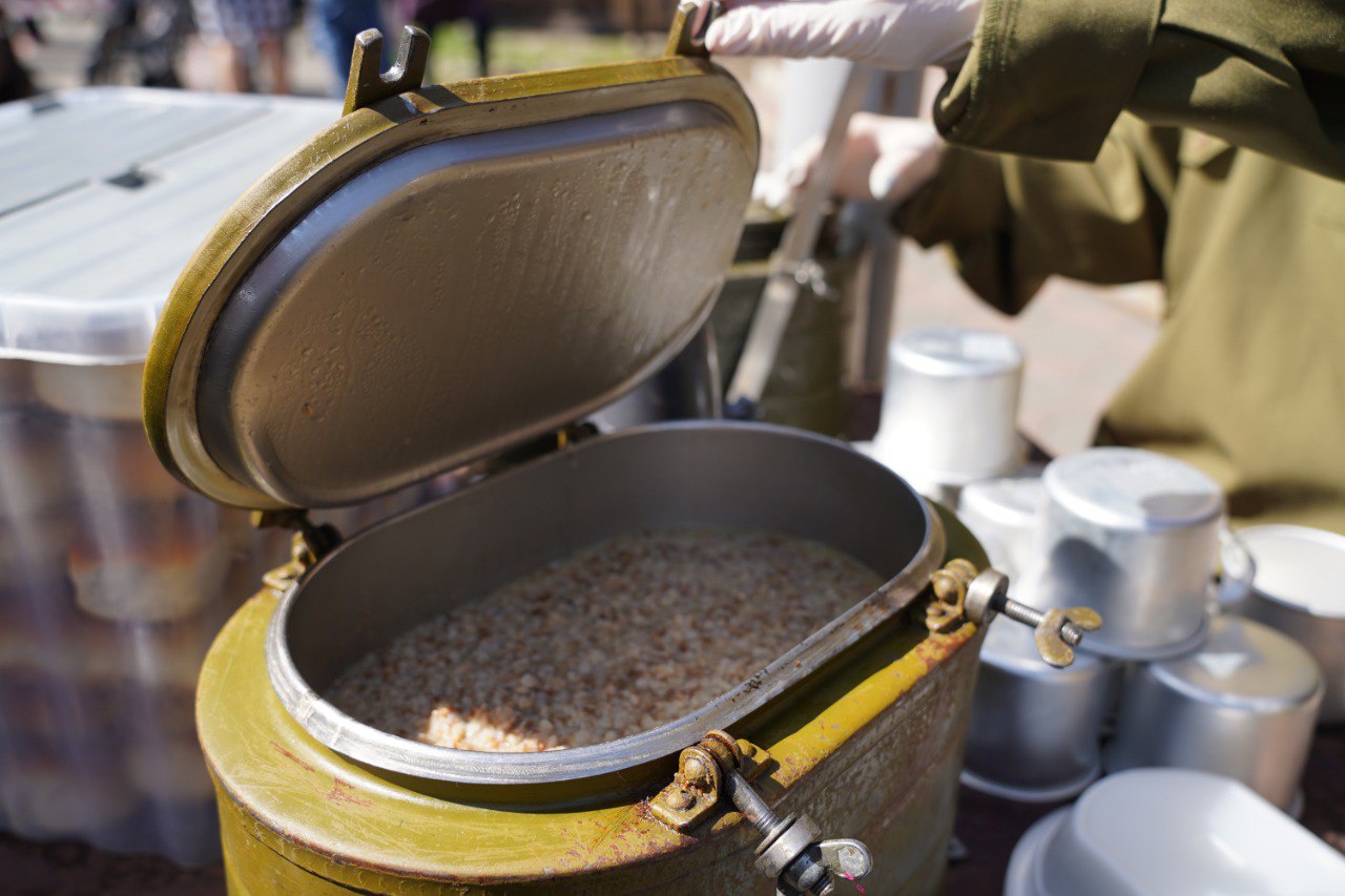 В парке традиционно угощали всех фронтовой кашей. Отведали её и ветераны.