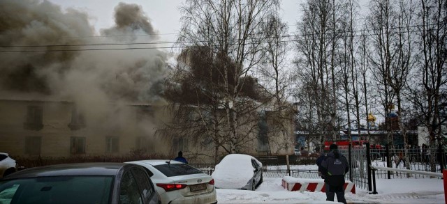 На улице Некрасова, 22, загорелся 16-квартирный деревянный дом. На опубликованной записи из окон и крыши валит густой черный дым, рядом со зданием толпятся местные жители.