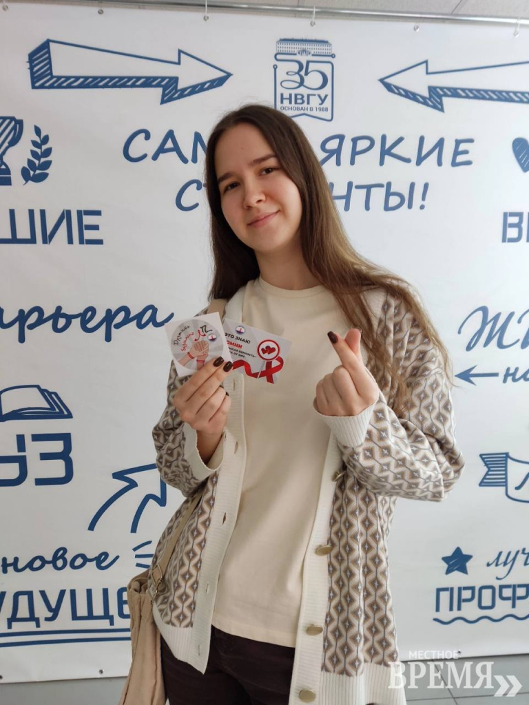 «О нас уже многие знают благодаря такой работе и отзываются в ответ положительно. Мы рады, что молодые люди с увлечением изучают новую информацию и заботятся о своем здоровье. И сегодня, в день любви, мы провели интересную акцию – раздали студентам и сотрудникам НВГУ памятные наклейки, календарики и брошюры с информацией о мифах про ВИЧ», – рассказывает Арина.