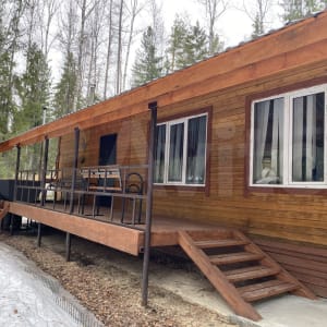 Продается дом в уникальном месте на берегу реки, в лесу, рядом с Карпоспатом. Дом из бруса 200 х 200, на металлических сваях, цоколь-пеноблоки, кровля - профлист, канализация местная, котел комбинированный, твердотопливный + электричество, скважина. Земли рекреации.